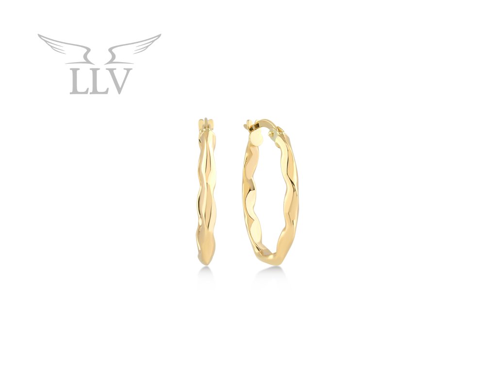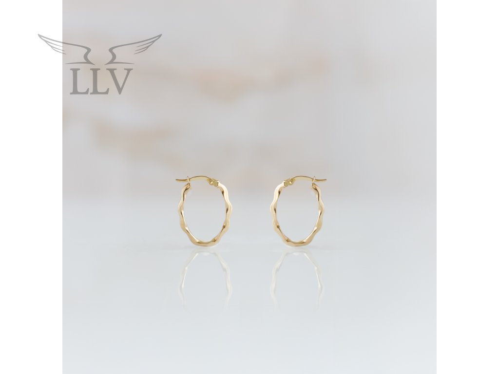 Oválné visací náušnice se zapínáním typu kreole, kdy se tyčinka jednoduše ohne v kloubu a následně zacvakne do protější části šperku, jsou vyrobené ze žlutého 14kt zlata s vysoce lesklým broušeným povrchem, který jim dodává atraktivní a luxusní vzhled.