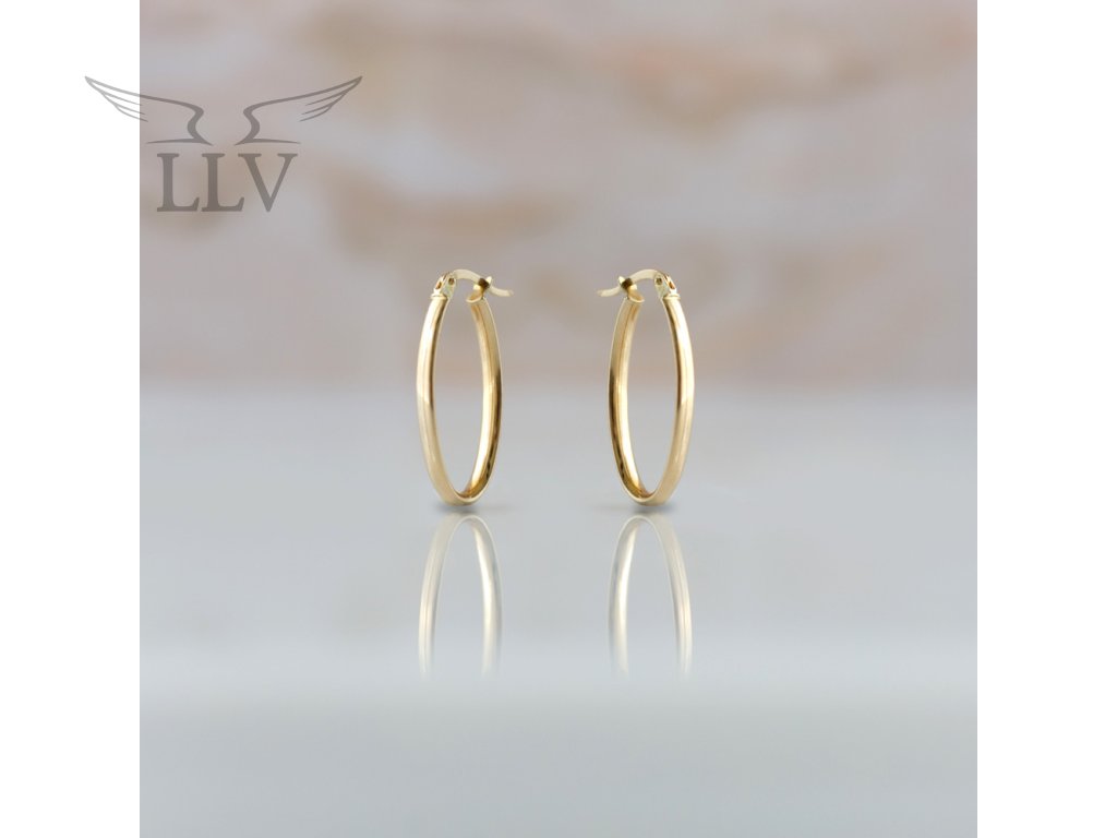 Oválné visací náušnice se zapínáním typu kreole, kdy se tyčinka jednoduše ohne v kloubu a následně zacvakne do protější části šperku, jsou vyrobené ze žlutého 14kt zlata s vysoce lesklým hladkým povrchem, který jim dodává luxusní vzhled a eleganci.