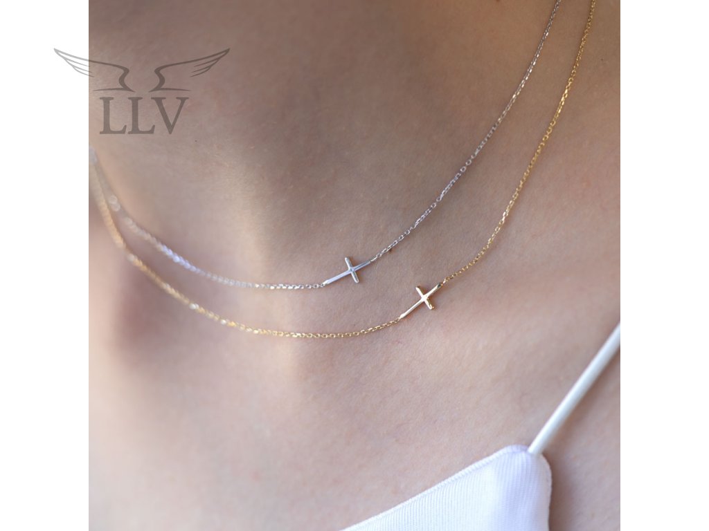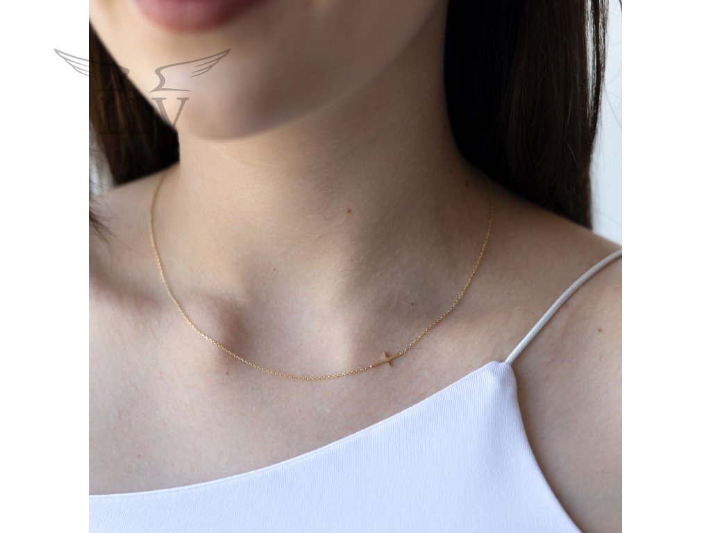 Celozlatý náhrdelník s křížkem naležato LLV46-GN044