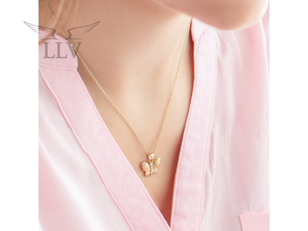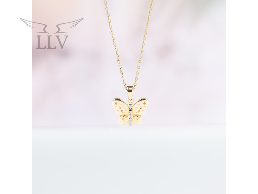 Decentní přívěsek ve tvaru motýla, který je vyrobený z kombinovaného 14kt zlata. Bílá část je jemně gravírovaná a povrch křídel je hladký ve vysokém lesku se zdobením. Ideální šperk na každodenní nošení a je vhodný jako dárek pro naše nejmenší. Udělejte radost sobě, nebo svým nejbližším tímto nádherným šperkem.