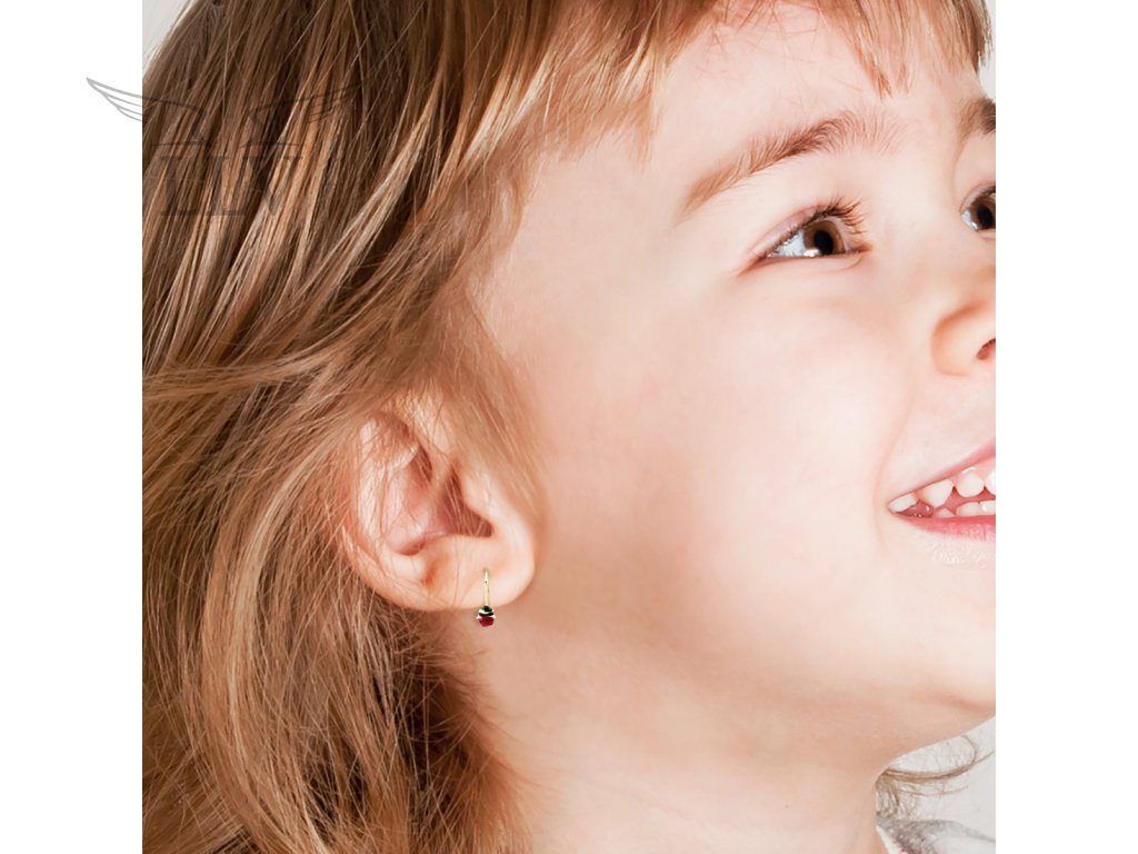 Tyto roztomilé náušničky s motivem berušky jsou vyrobeny ze žlutého 14kt zlata. Každou náušnici zdobí beruška, která je zhotovena z kamene jménem Smalt. Povrch náušnic je hladký v lesklé povrchové úpravě. Výhodou těchto náušnic je jejich zapínání typu „brizura“, které je ideální především pro miminka a menší děti. Tyto rozkošné náušnice budou slušet každé malé slečně. Skvělý tip na dárek.