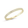 Jemný prsten ve žlutém 14kt zlatě zdobený zářivými zirkony čiré barvy, které jsou posázené téměř po celém obvodu. Povrch prstenu je hladký v lesklé povrchové úpravě a kameny jsou uchycené v malých krapnách tzv. "zrnkách". Výhodou je možnost kombinace se zásnubním prstenem. Jemný a minimalistický model, který jistě vykouzlí úsměv na tváři každé ženě i slečně.