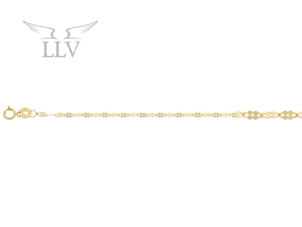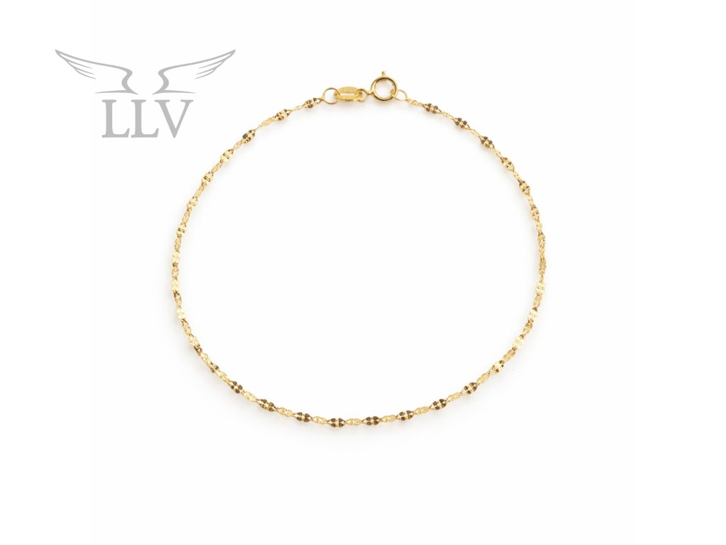 Tento zlatý 14kt náramek okouzlí svou jemností a precizně broušenými články, které při každém pohybu krásně odrážejí světlo. Elegantní, lehký a pohodlný na nošení, představuje ideální doplněk pro ženy, které preferují decentní, ale přesto luxusní šperky.