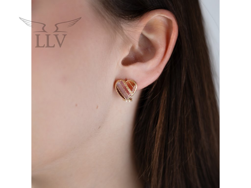 Exkluzivní zlaté náušnice srdce s ulexitem, zapínání omega LLV22-GER196