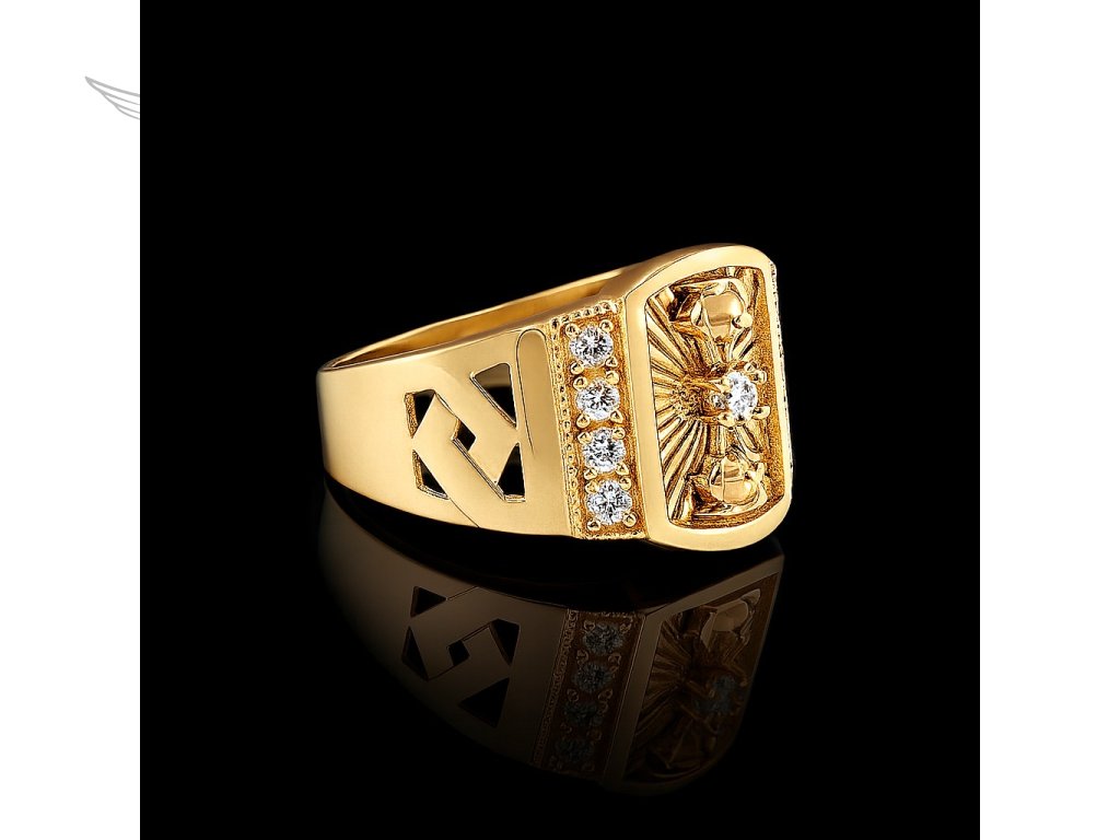 Luxusní zlatý prsten s originálním motivem a zirkony představuje dokonalou kombinaci síly, elegance a moderního stylu – ideální volbu pro ty, kteří se nebojí zaujmout a chtějí vyjádřit svůj osobitý vkus prostřednictvím šperku.