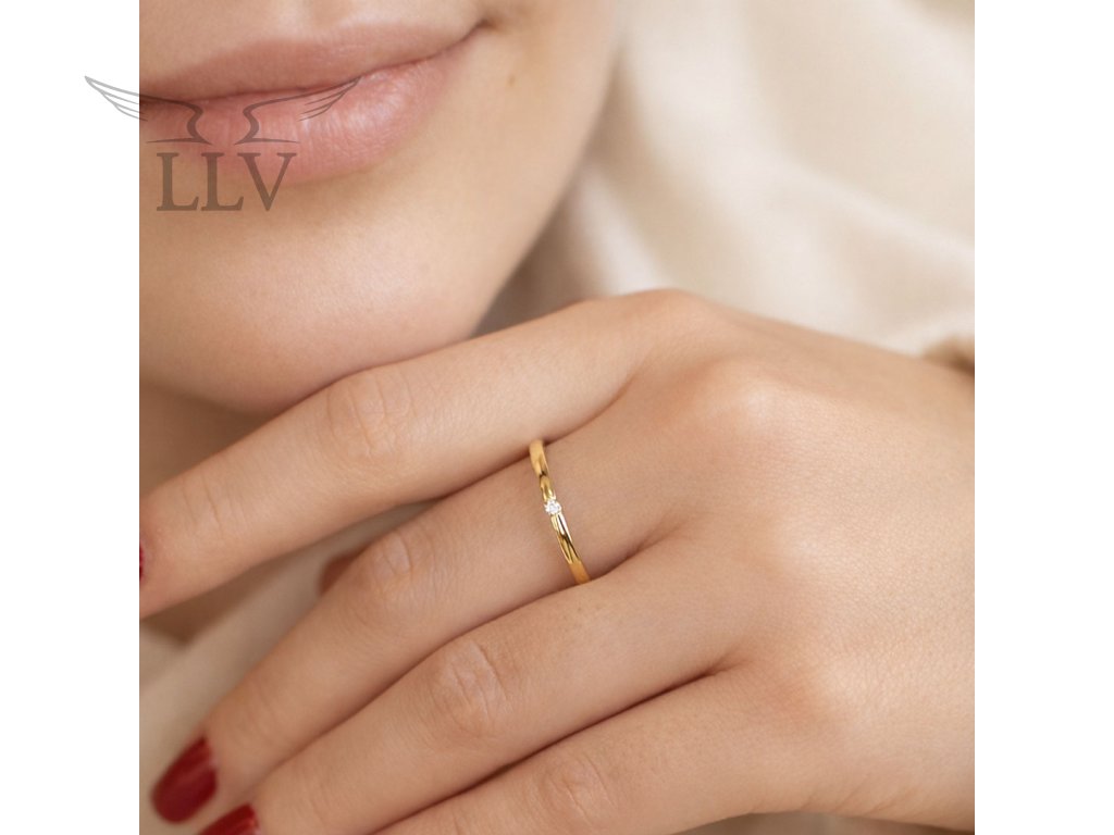 Jemný zlatý prsten zdobený zirkonem LLV66-GR119