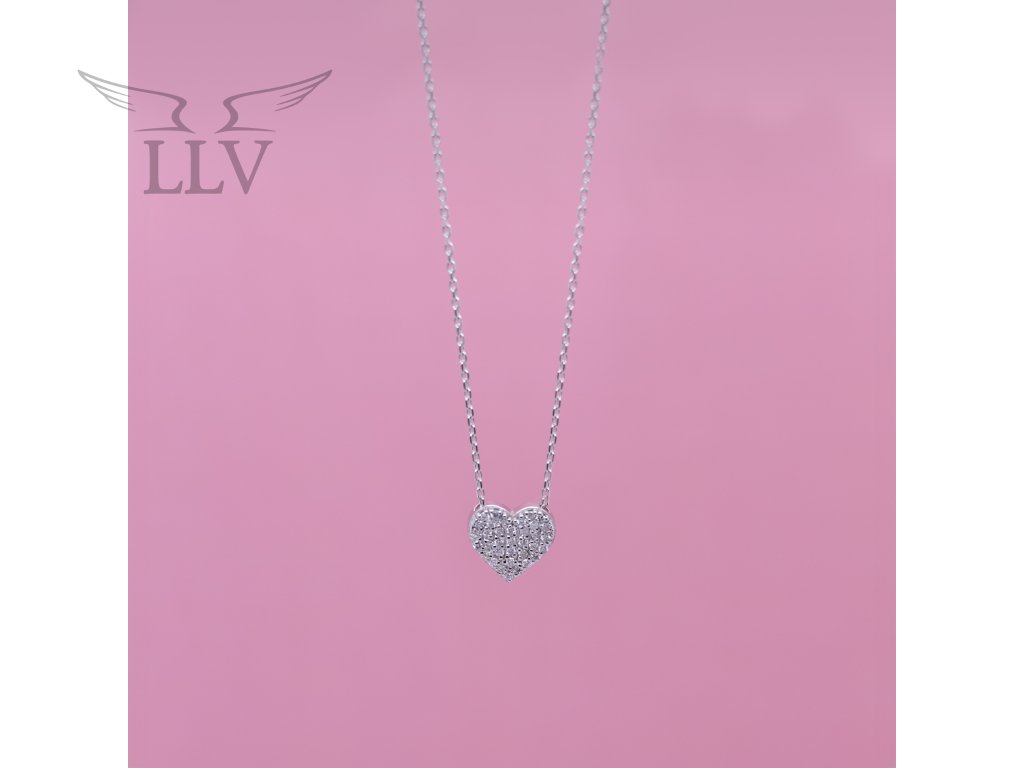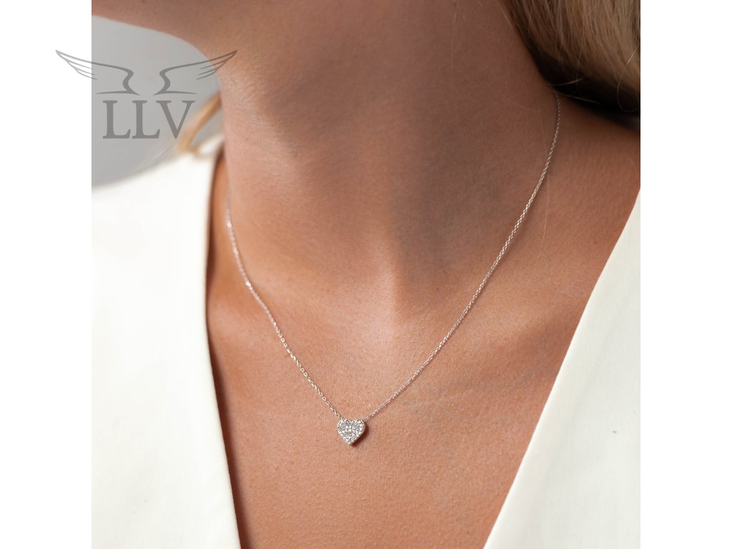 Náhrdelník s brilianty v bílém zlatě, srdce LLV47-DN001