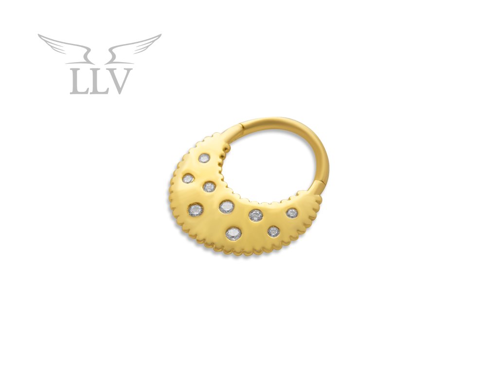 Originální zlatý piercing kroužek zdobený zirkony LLV92-GPI030SP