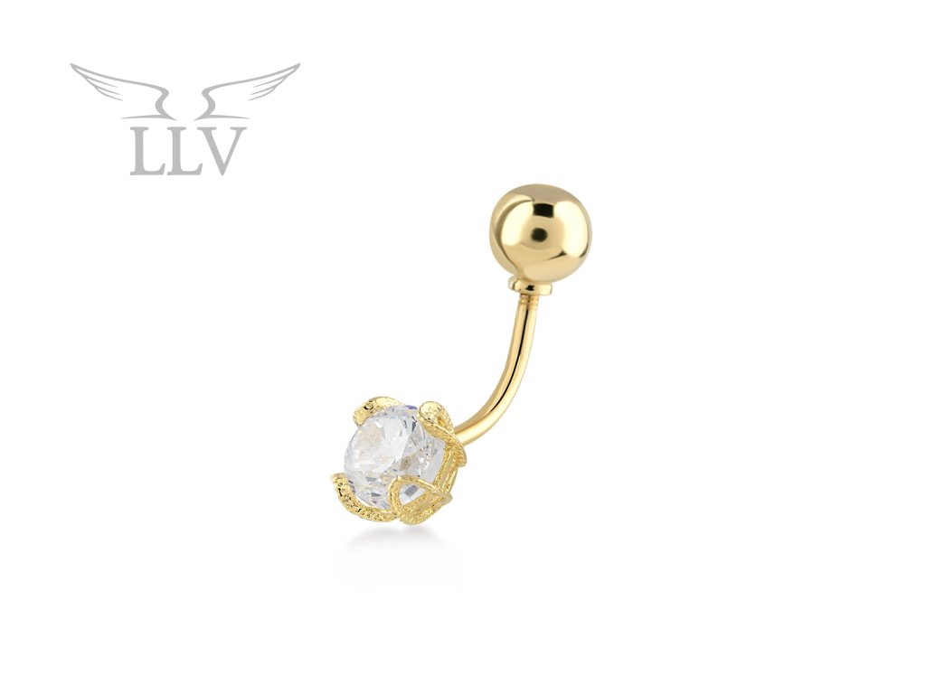 Originální zlatý piercing s gravírováním a zirkonem LLV01-GPI013