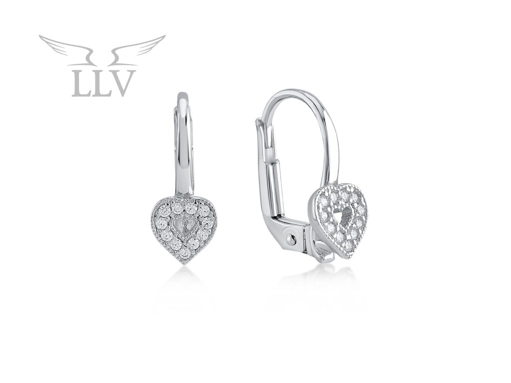Patentové náušnice srdíčko se zirkony, bílé zlato LLV11-GER050W