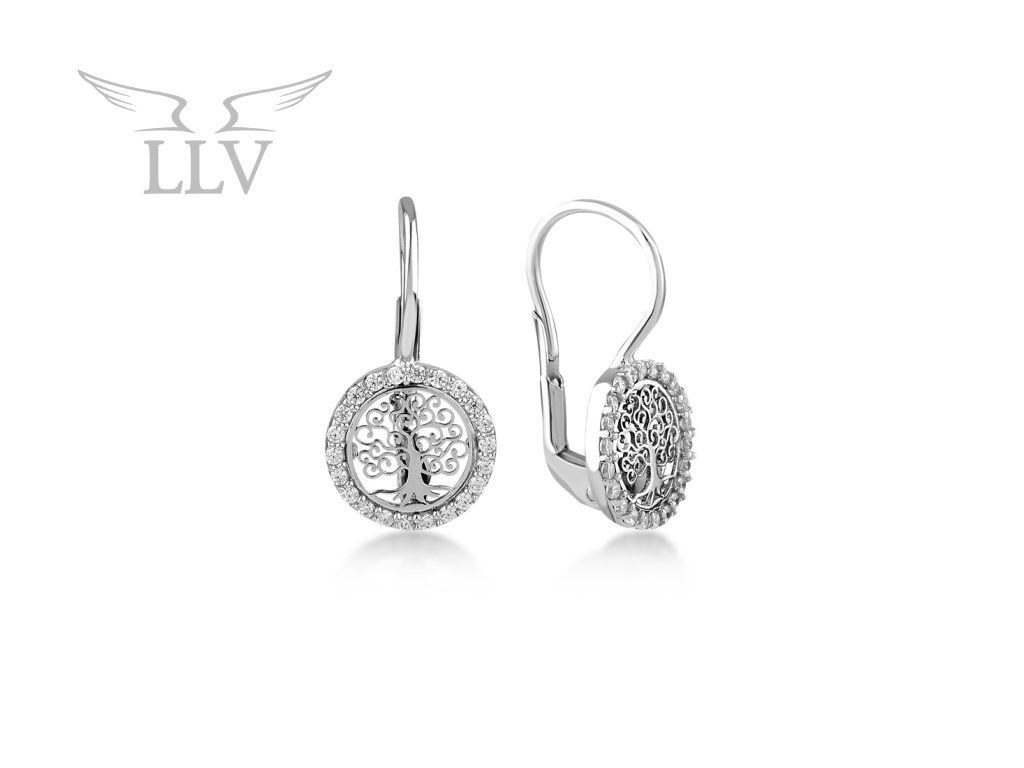 Patentové náušnice strom života se zirkony v bílém zlatě LLV22-GER064W