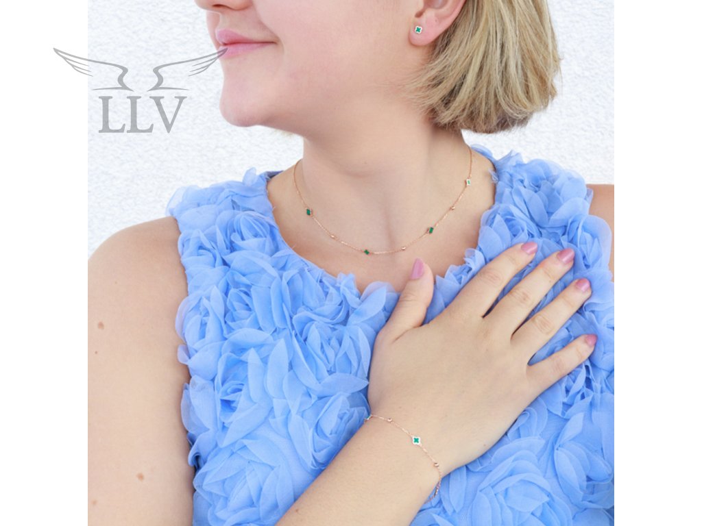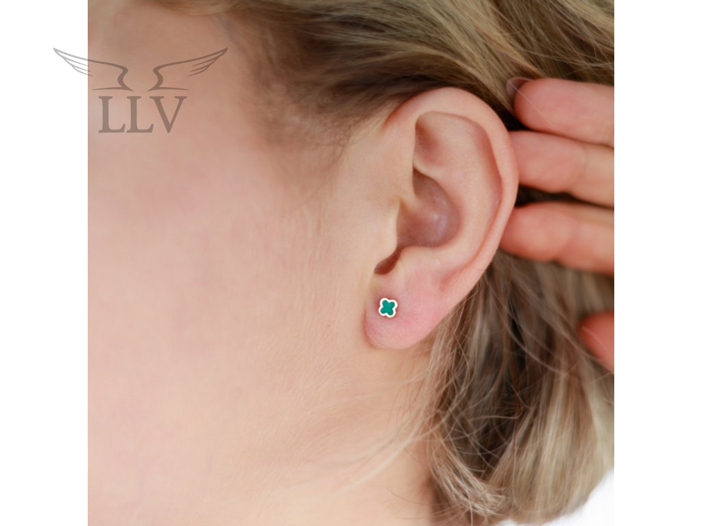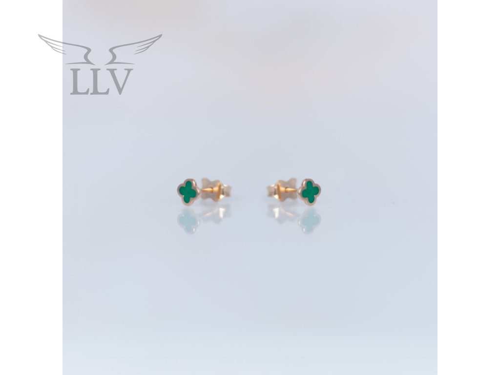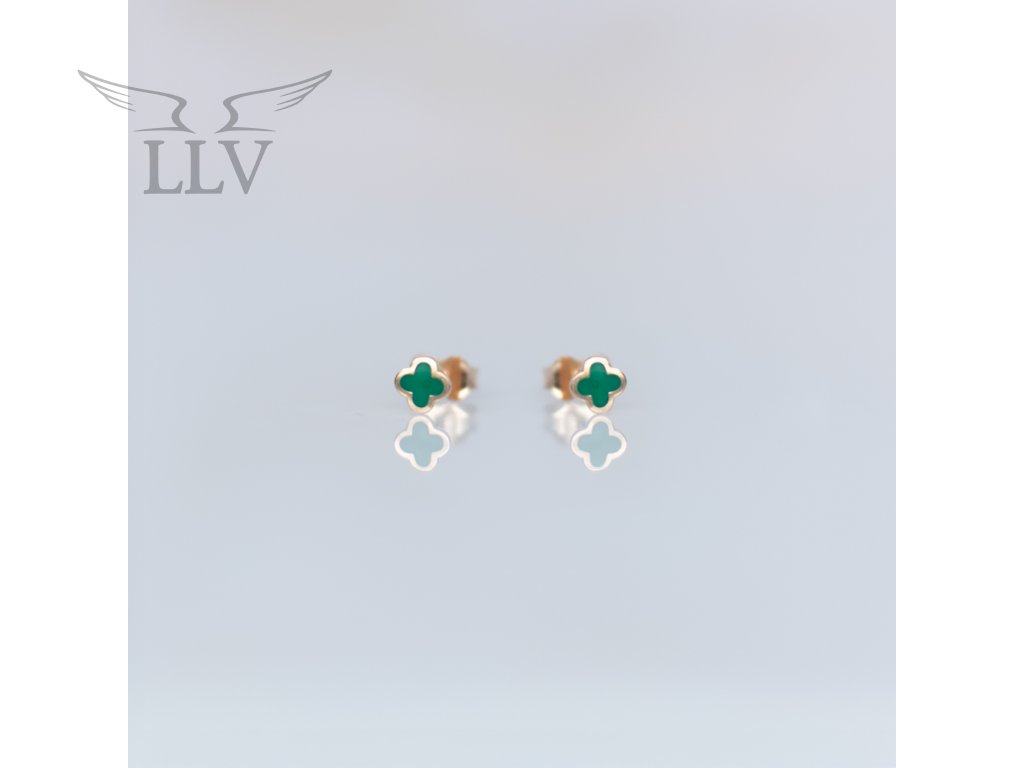 Peckové náušnice s čtyřlístkem s zeleným smaltem, ružové zlato LLV06-GER434R