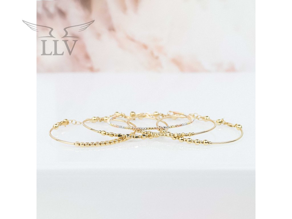 Pevný zlatý náramek s kostičkami LLV01-GB002