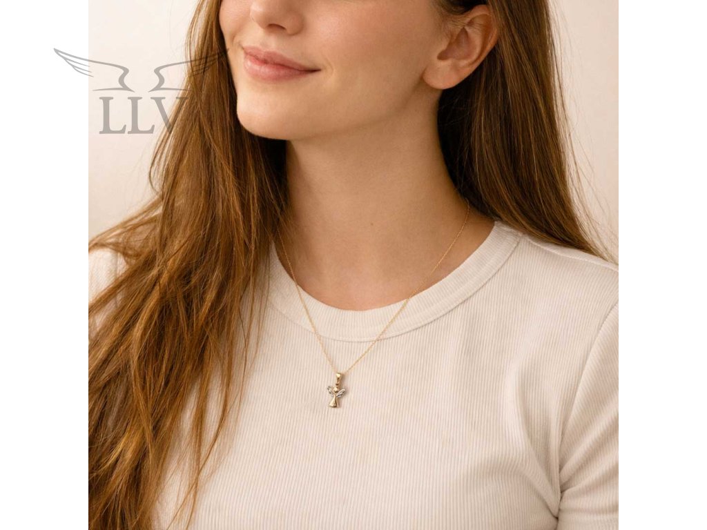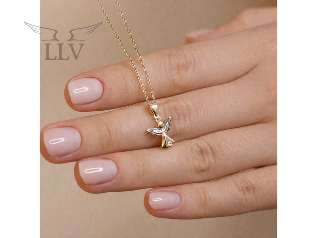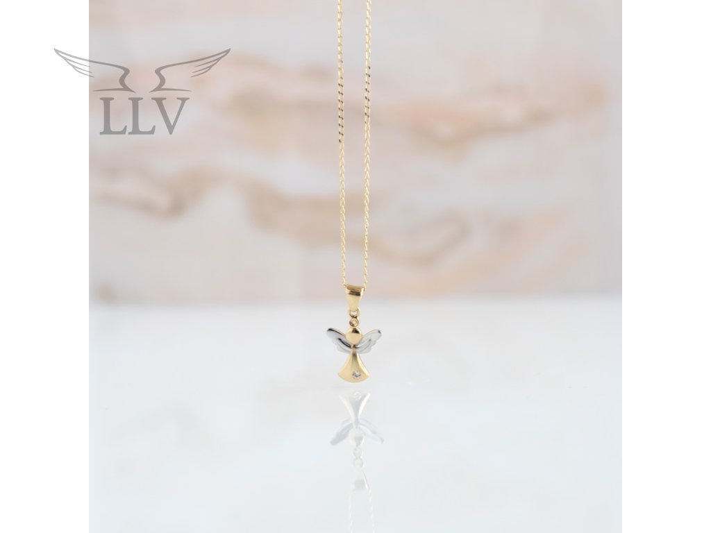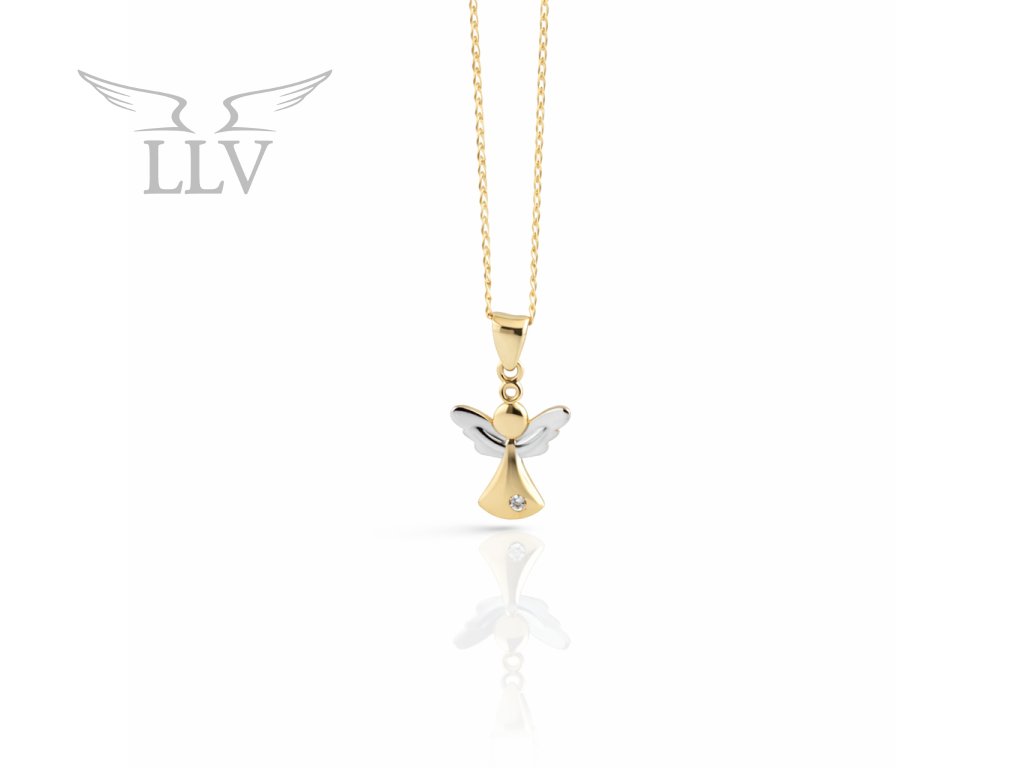 Přívěsek z kombinovaného zlata Anděl se zirkonem LLV66-GP189WY