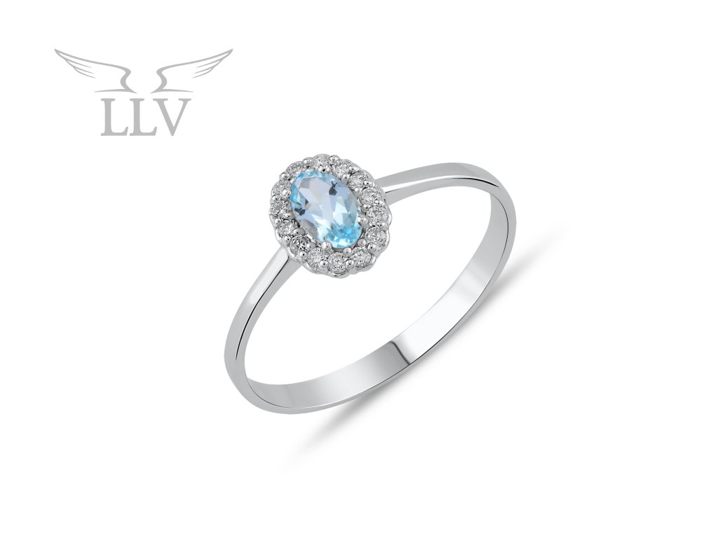 Prsten s modrým topazem a brilianty, bílé zlato LLV11-SMR5730-02-BTZ