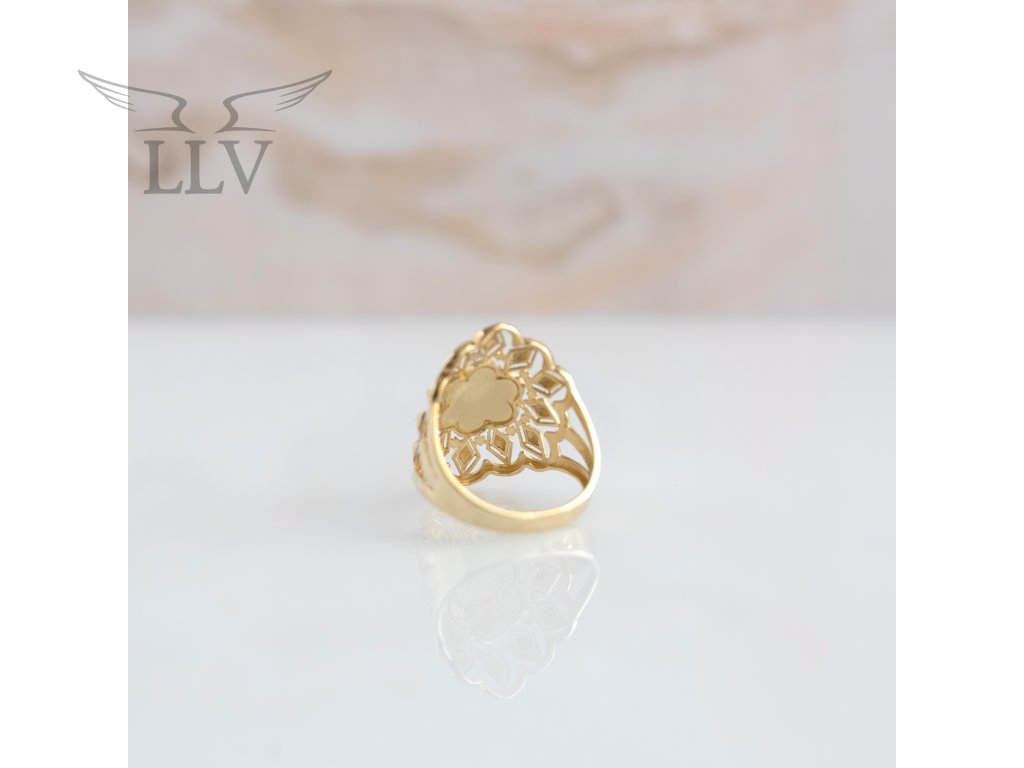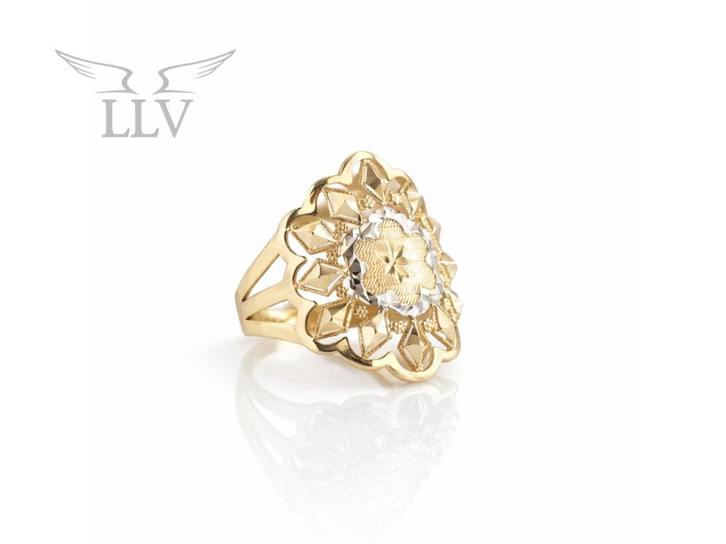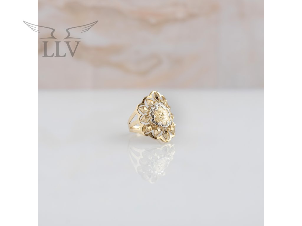 Prsten s motivem květiny s gravírem, kombinované zlato LLV07-GR011