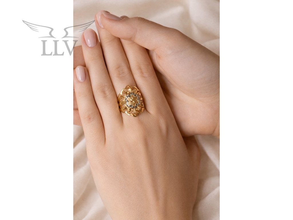 Květ, který nikdy neuvadne. Tento výrazný prsten z 14kt žlutého zlata připomíná rozkvetlou květinu zachycenou v nejkrásnějším okamžiku. Dominantní středový motiv s jemným gravírováním rozvíjí světelné odlesky a vytváří efekt živého třpytu, zatímco zaoblené okvětní linie dodávají šperku ženskou něhu i sílu.