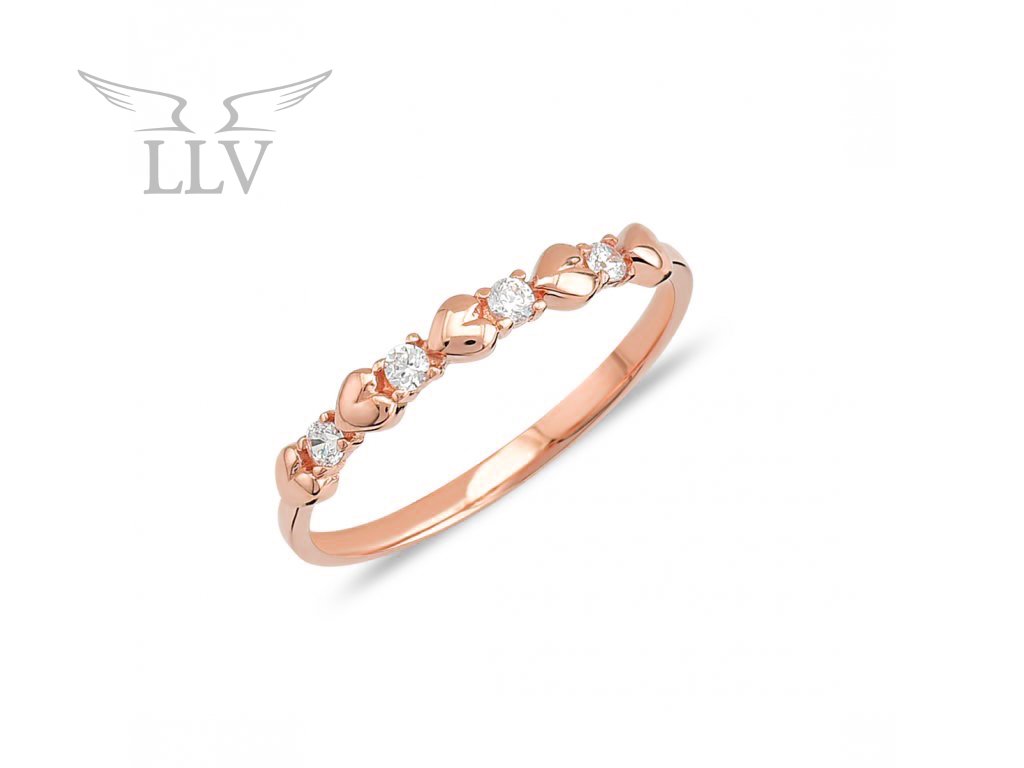 Prsten se srdíčky a zirkony, růžové zlato LLV11-GR005R