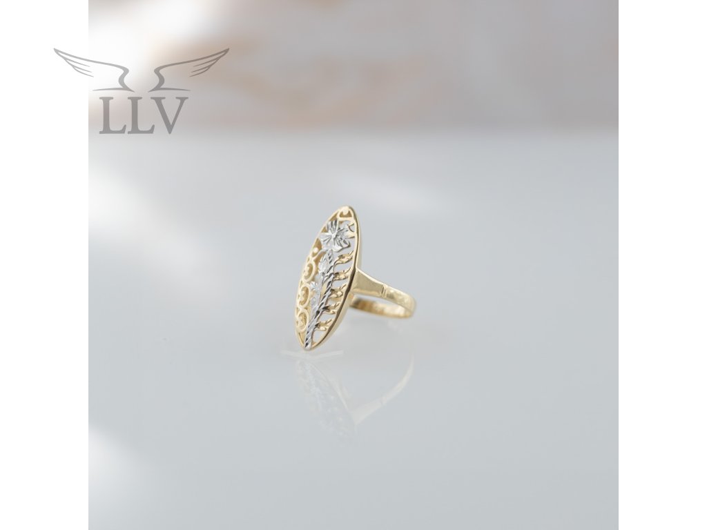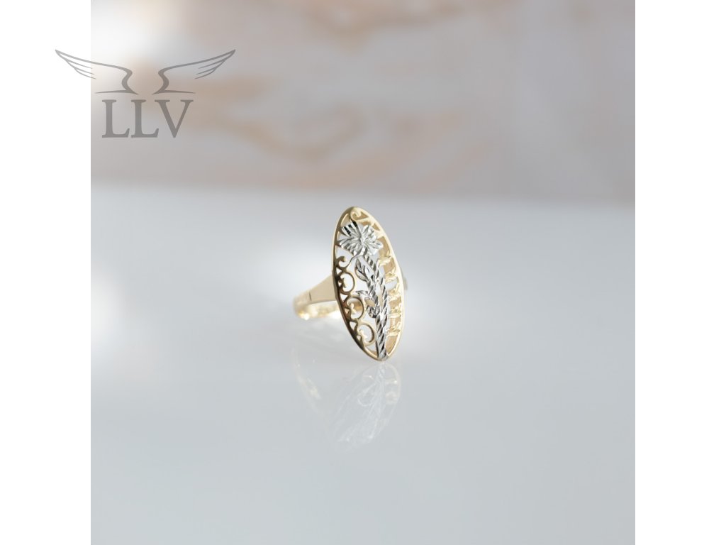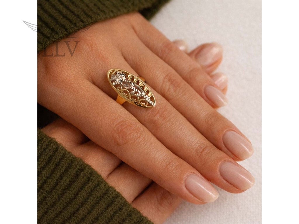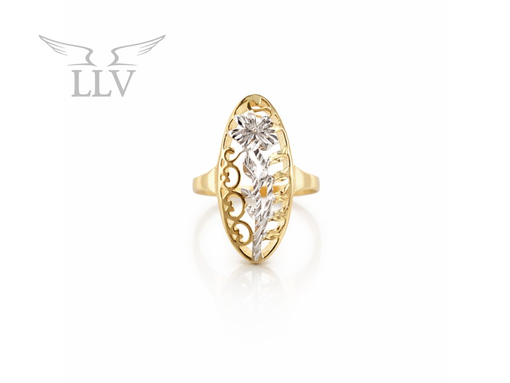 Prsten zdobený květinou s gravírováním, kombinované zlato LLV07-GR021