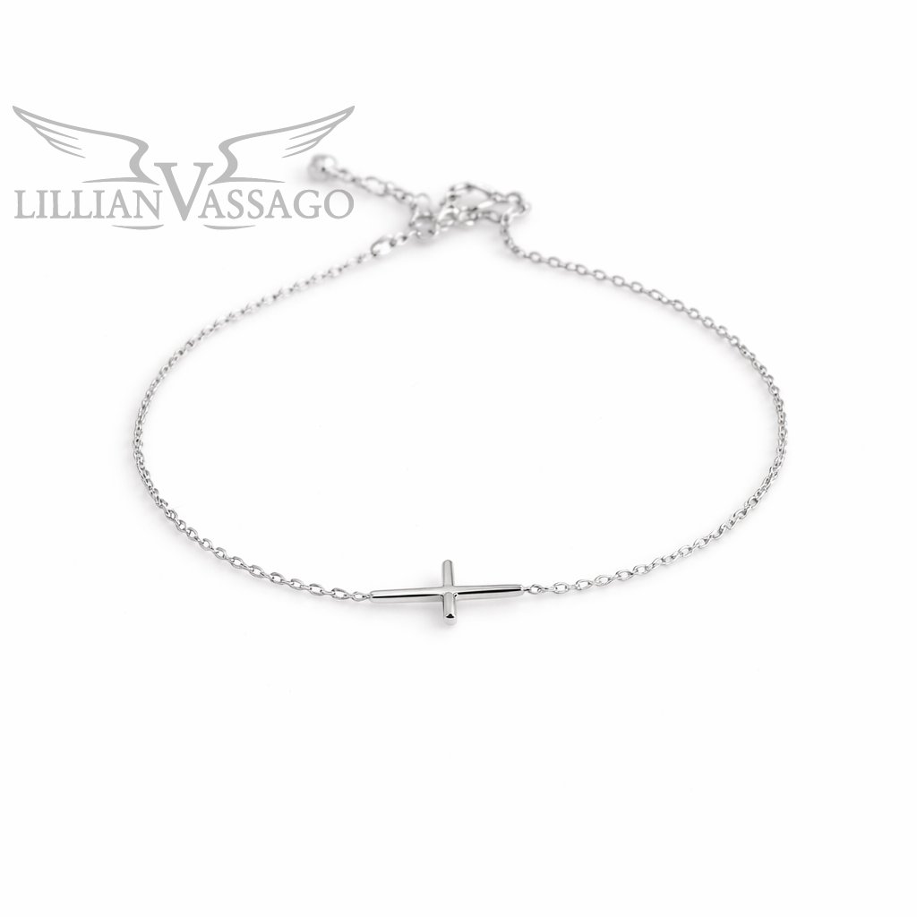 Řetízkový náramek zdobený křížkem, bílé zlato LLV46-GB030W