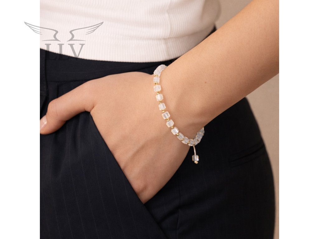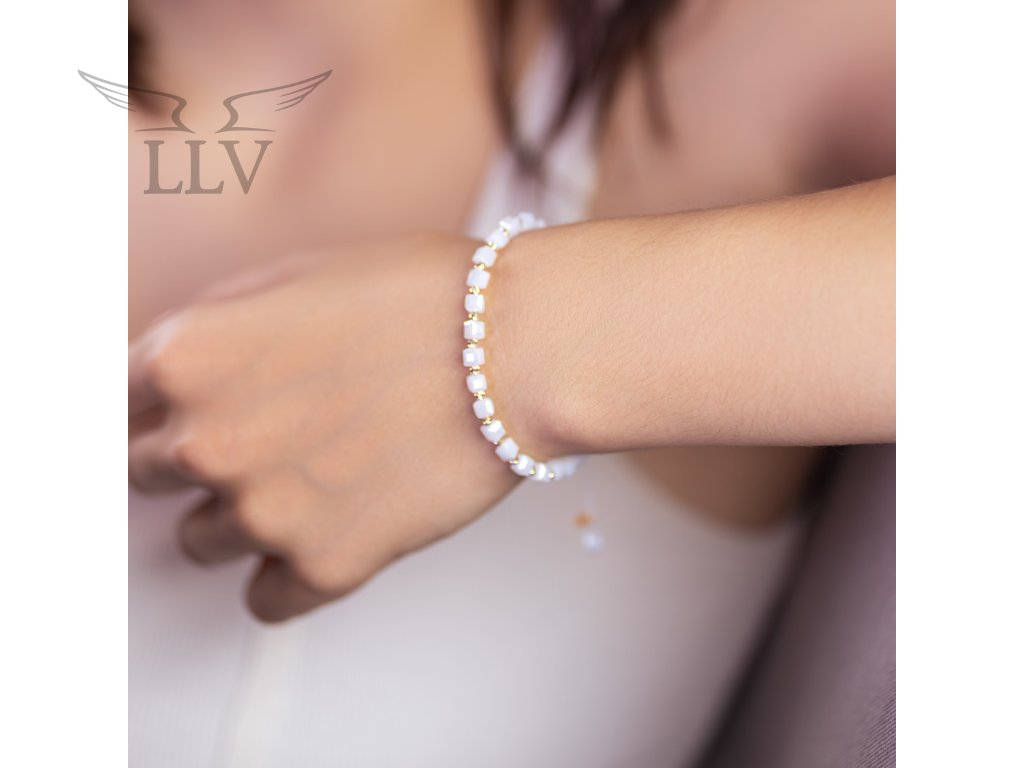Šňůrkový náramek s bílými onyxy LLV07-GB017W-1