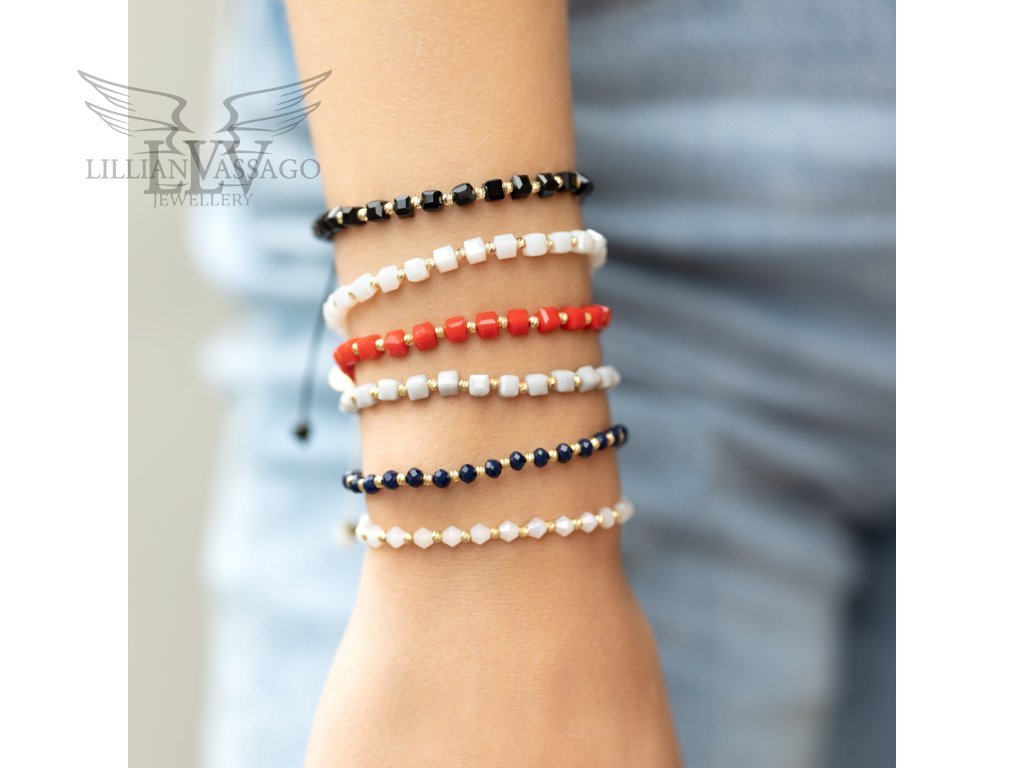 Moderní náramek s červenými křišťály doplněný kuličkami ze žlutého 14kt zlata. Zlaté kuličky jsou zdobeny jemným gravírem. Díky tomuto minimalistickému detailu je tento náramek naprosto jedinečný. Variabilní nastavení délky zajistí, že náramek dokonale padne na každou ruku. Tento netradiční šperk osvěží každý Váš outfit. Dokonalý dárek pro milovnice barevných a výrazných šperků.