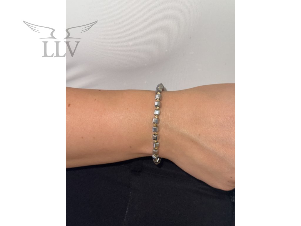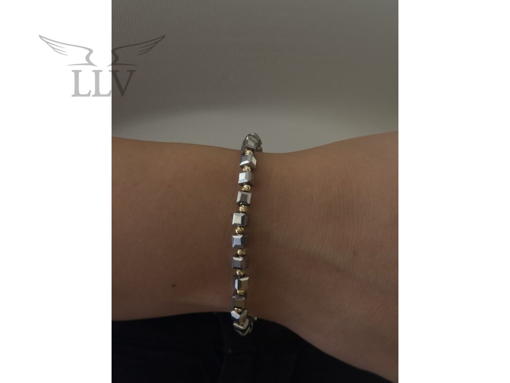 Šňůrkový náramek s křištály a zlatými komponenty LLV07-GB015