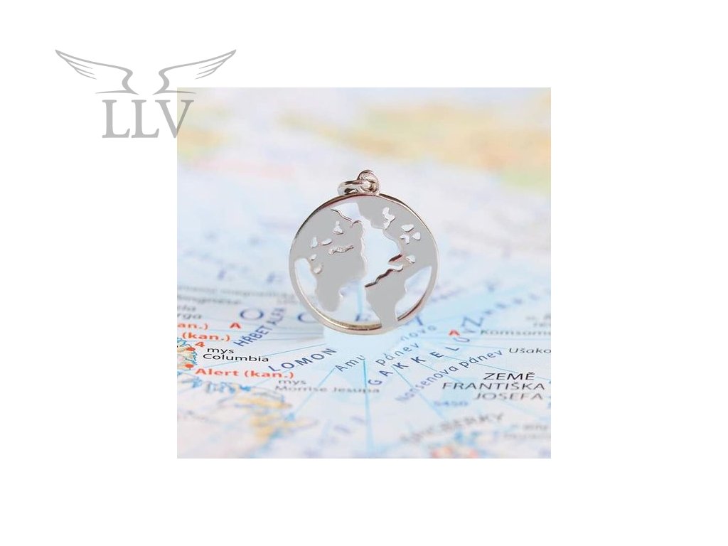 Unikátní přívěsek zeměkoule ze stříbra 925/1000 ve vysokém lesku. Ukažte svoji lásku pro naši planetu nebo si připomínejte vzpomínky na cestování po světě.