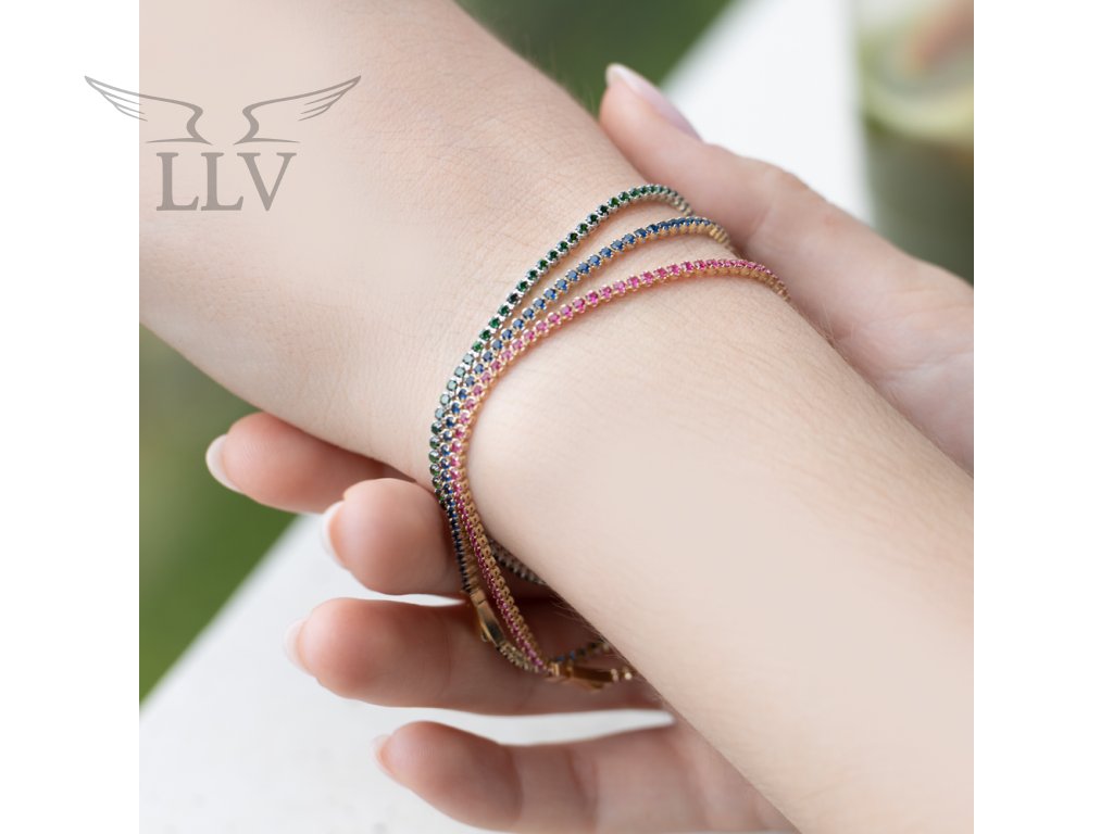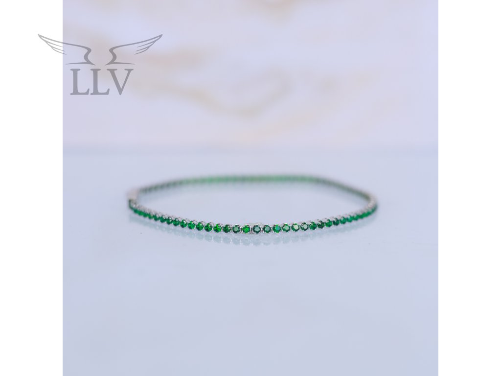 Tenisový náramek zdobený zelenými zirkony, bílé zlato LLV03-GB004