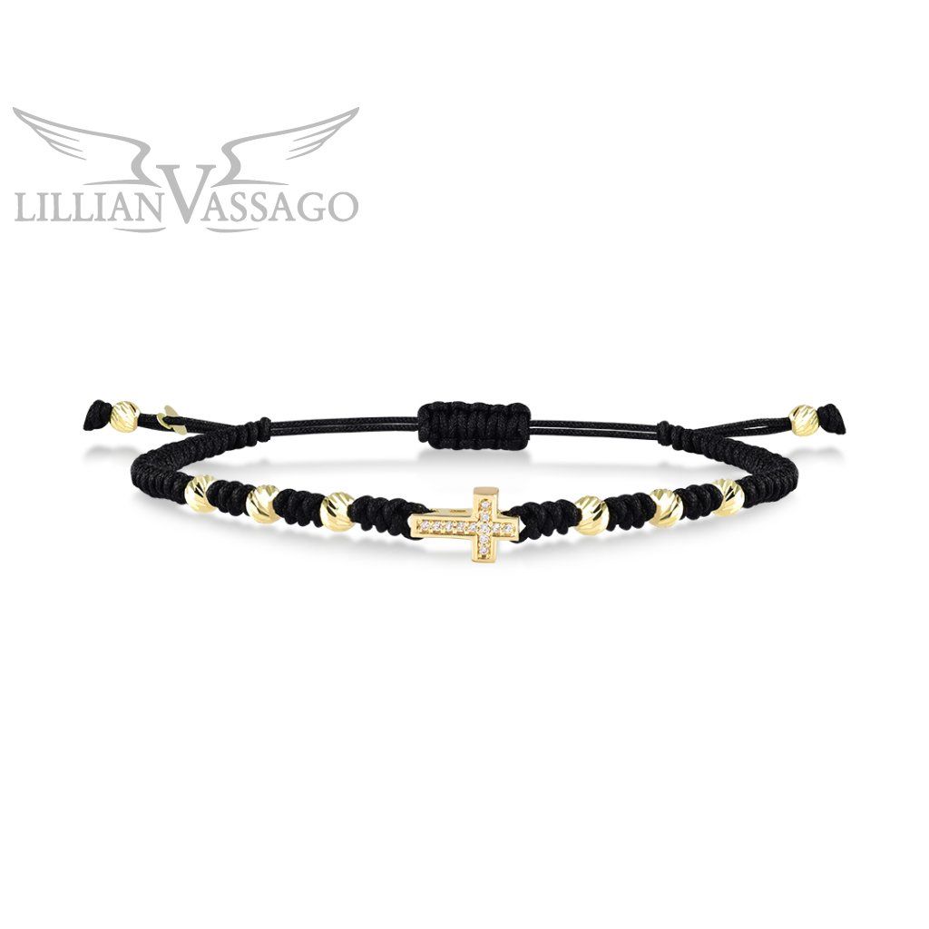 Textilní náramek s křížkem a zlatými komponenty LLV07-GB020