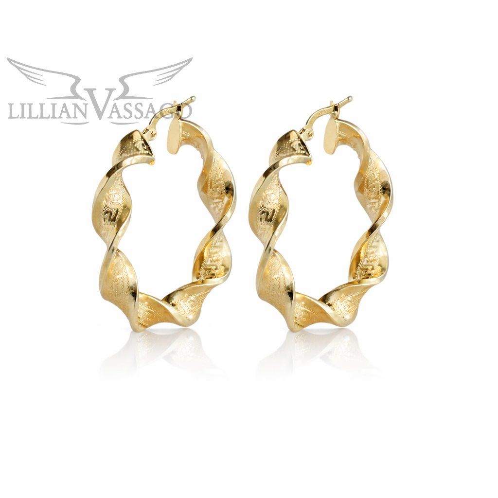 Zakroucené zdobené zlaté kruhové náušnice 3,8 cm LLV07-GER001
