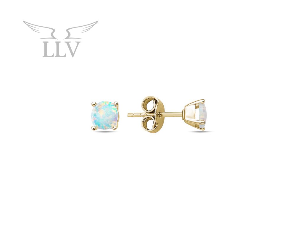 Zlatá náušnice na puzetu zdobená opálem, jeden kus LLV98-GER172P/01