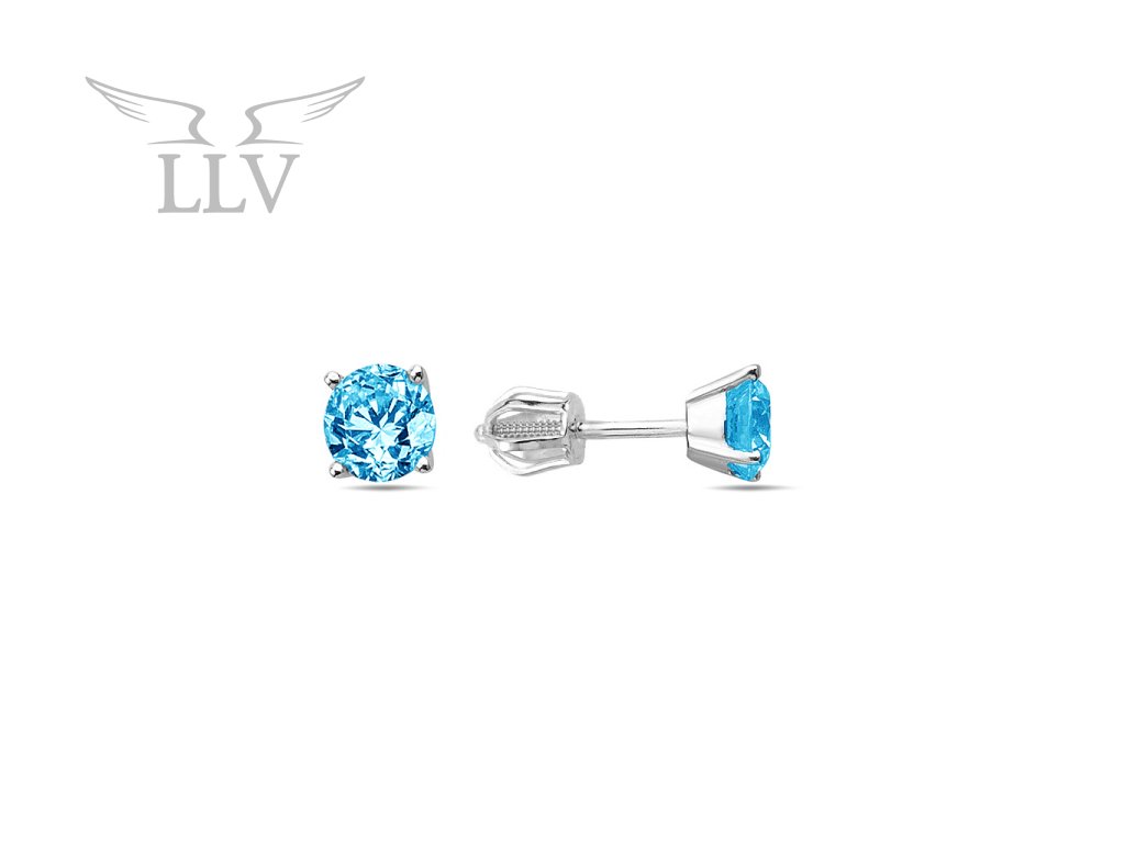 Zlatá náušnice se zirkonem v barvě aquamarínu 5 mm, na šroubek, jeden kus LLV98-GER169Š/01