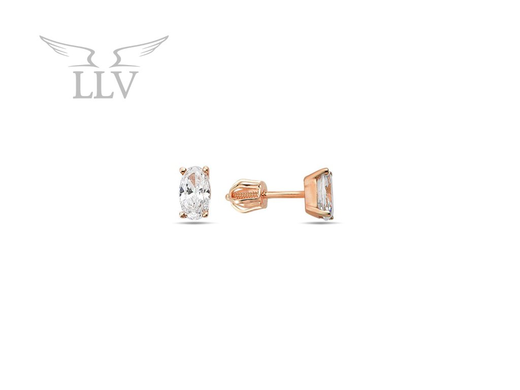Zlatá náušnice zdobená oválným zirkonem, na šroubek, jeden kus LLV98-GER163Š/01