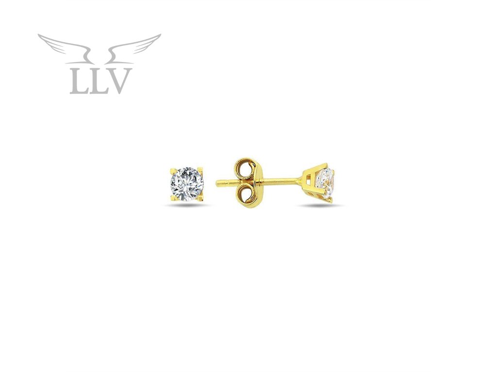 Zlatá náušnice zdobená zirkonem 4 mm, na puzetu, jeden kus LLV98-GER162P/01