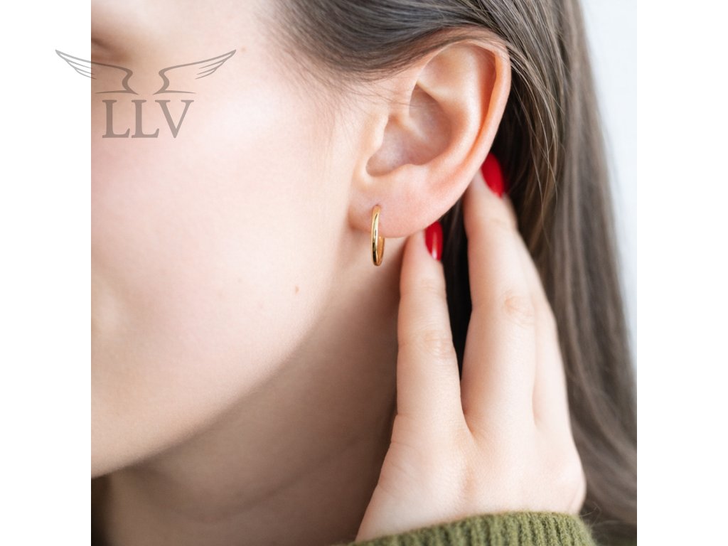 Krásné kruhové náušnice ze žlutého 14kt zlata ve tvaru kruhu Vás jistě okouzlí na první pohled. Povrch náušnic je hladký v lesklé povrchové úpravě. Náušnice se zapínají na zaklapnutí do drážky, které je velice bezpečné a nebude Vám nijak překážet.