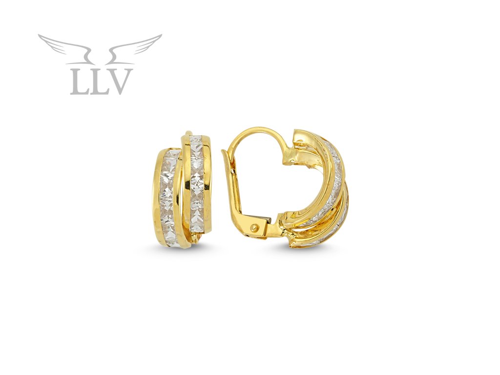 Zlaté náušnice na patent se zirkony LLV75-GER054