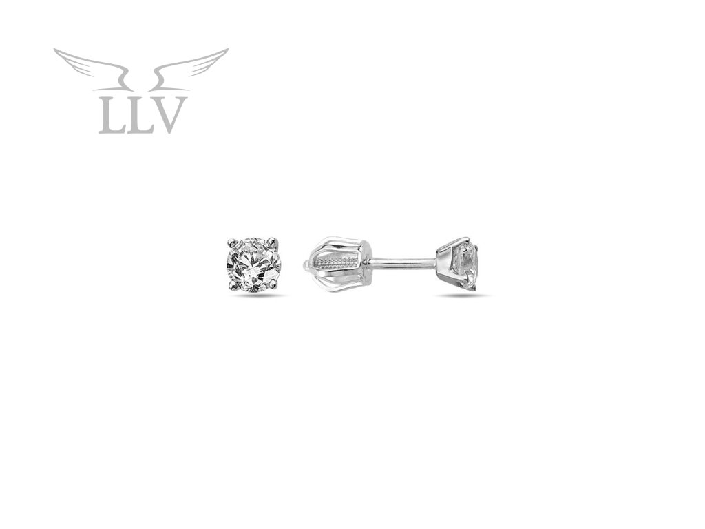 Dominantním prvkem náušnic je kulatý čirý zirkon o průměru 3,5 mm, elegantně zasazený do čtyř krapen, přičemž hlavice podtrhává jeho třpyt. Vysoký lesk zlata v kombinaci s průzračností kamene vytváří šperk, který působí jemně, a přesto nepřehlédnutelně. Zapínání na šroubek zajistí pohodlné a bezpečné nošení.