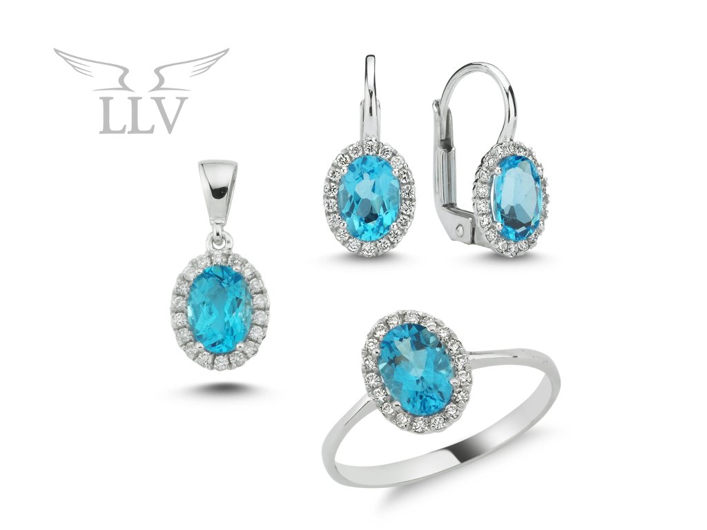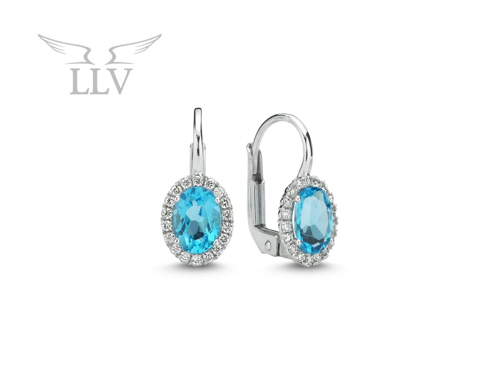 Náušnice v bílém zlatě s modrým topazem a diamanty LLV11-SMEG5637-02-BTZ