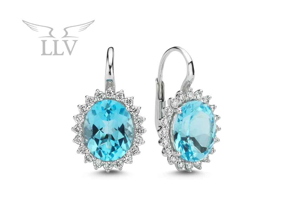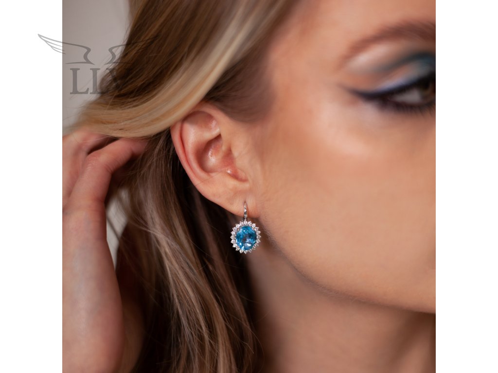 Náušnice z bílého zlata s modrým topazem a brilianty LLV11-SMEG5651-02-BTZ