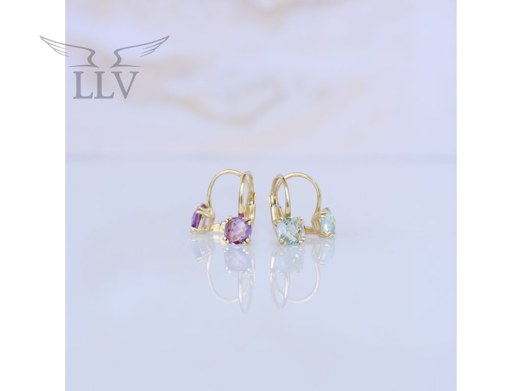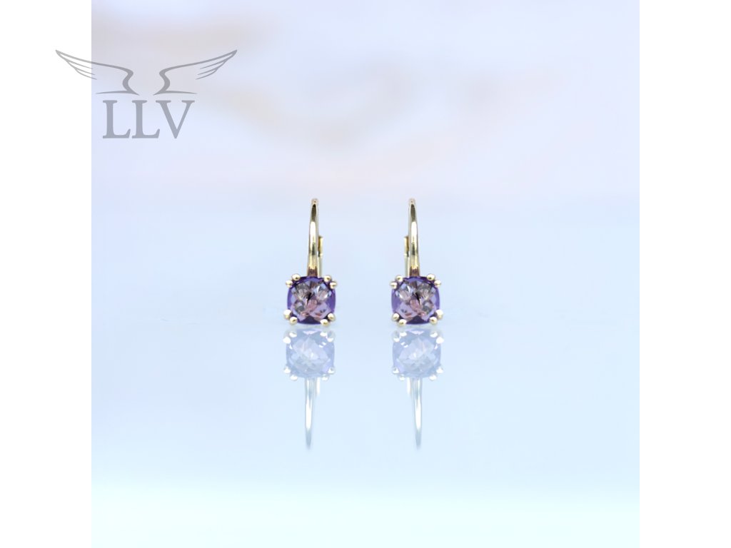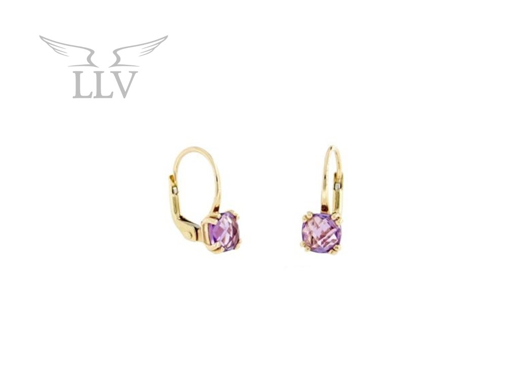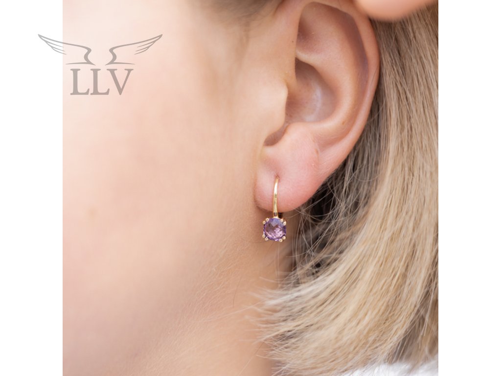 Zlaté náušnice zdobené fialovým topazem LLV31-GER053VT