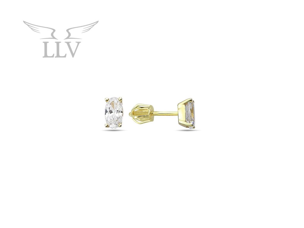 Zlaté náušnice zdobené oválným zirkonem, na šroubek LLV98-GER163Š