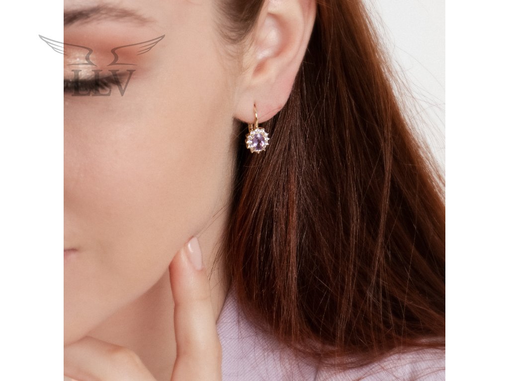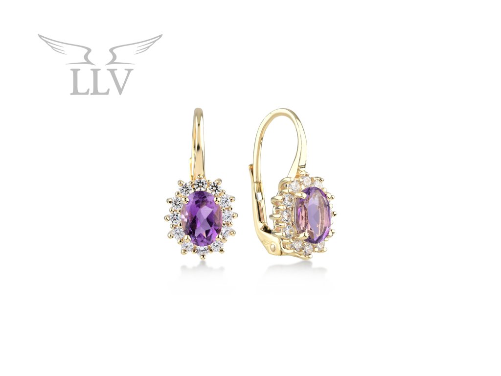 Zlaté patentové náušnice s ametystem a zirkony LLV22-GER068YA