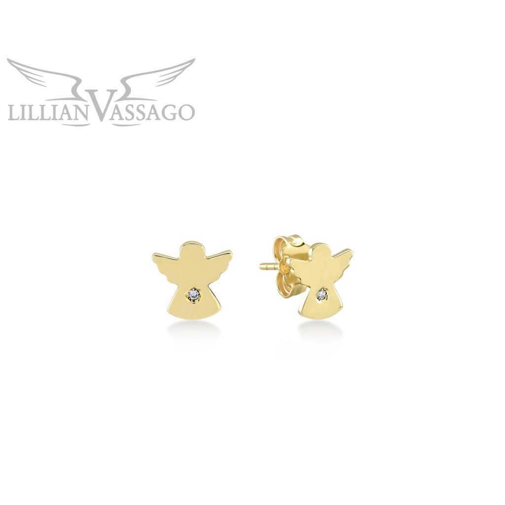 Zlaté peckové náušnice s andílky a zirkony LLV22-GER100