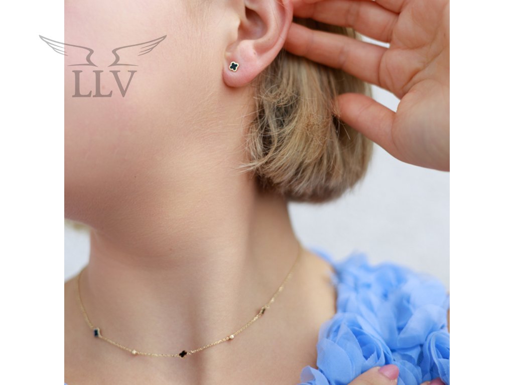 Zlaté peckové náušnice s čtyřlístkem s černým smaltem LLV06-GER433Y