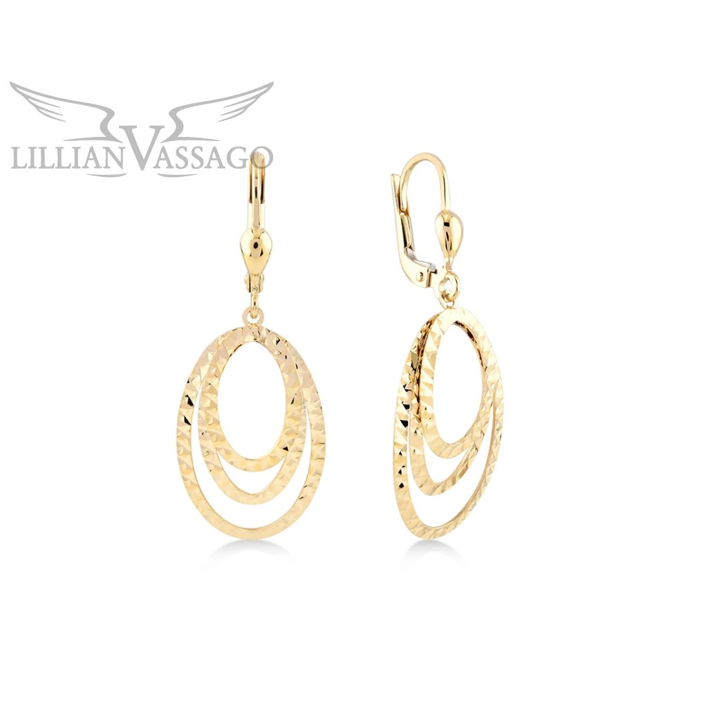 Doplňte svou šperkovnici originálními visacími náušnicemi ve tvaru oválu vyrobenými ze žlutého 14kt zlata s hřejivě lesklým povrchem. Ozdobu náušnic tvoří tři ovály různých velikostí, vkusně umístěné na sebe a zdobené gravírem, díky kterému se zlatavé odlesky odráží při nošení náušnic na všechny strany. Klasické zapínání na patent zaručuje praktické a pohodlné nošení po celý den.