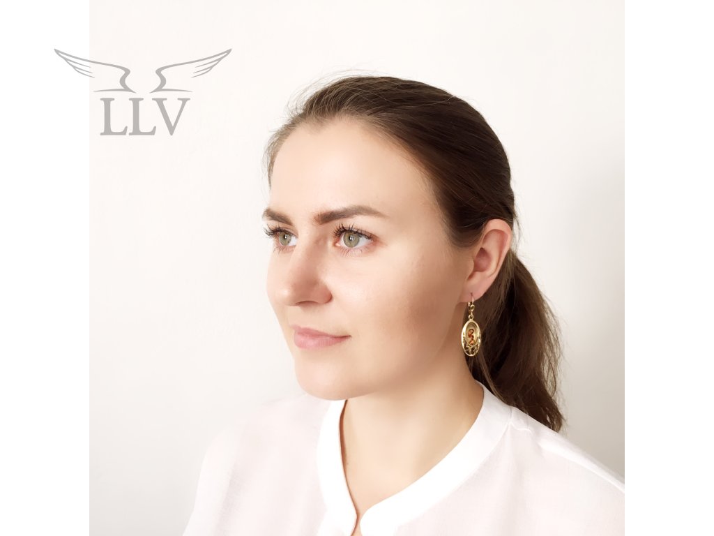 Zlaté visací náušnice s madonkou a dítětem LLV75-GER021