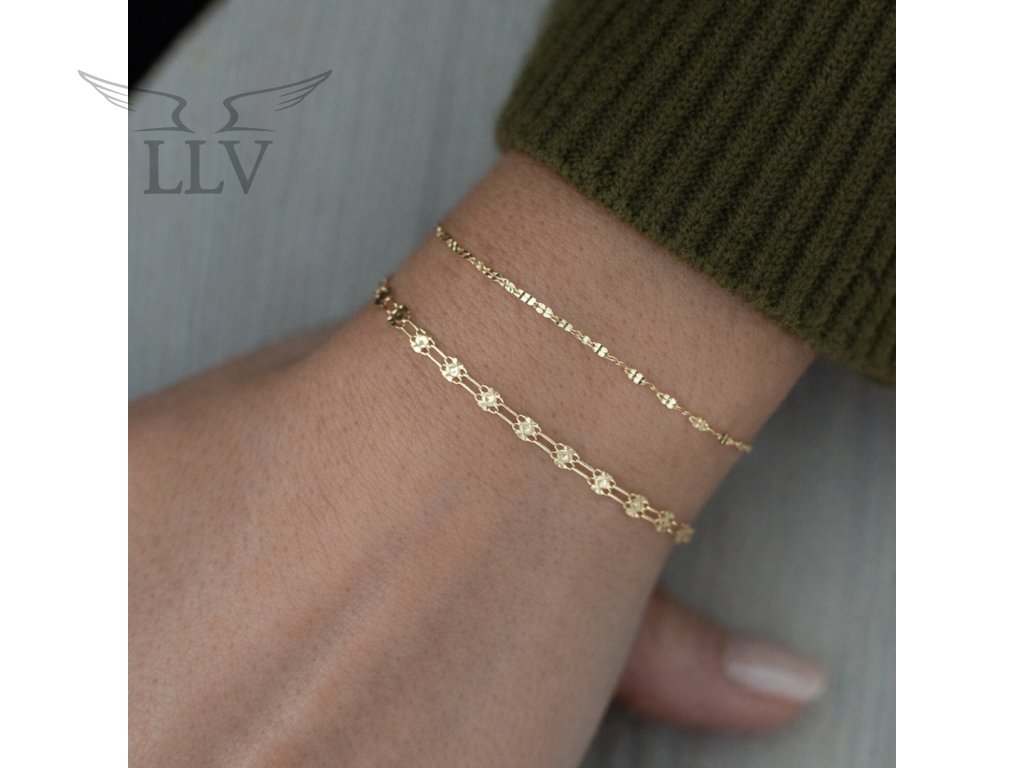 Zlatý článkový náramek ze 14kt zlata okouzlí svým jedinečným designem tvořeným drobnými, precizně broušenými články, které dohromady vytvářejí elegantní a výraznou strukturu. Každý článek zachycuje světlo pod jiným úhlem, což náramku dodává krásný třpyt a sofistikovaný vzhled.