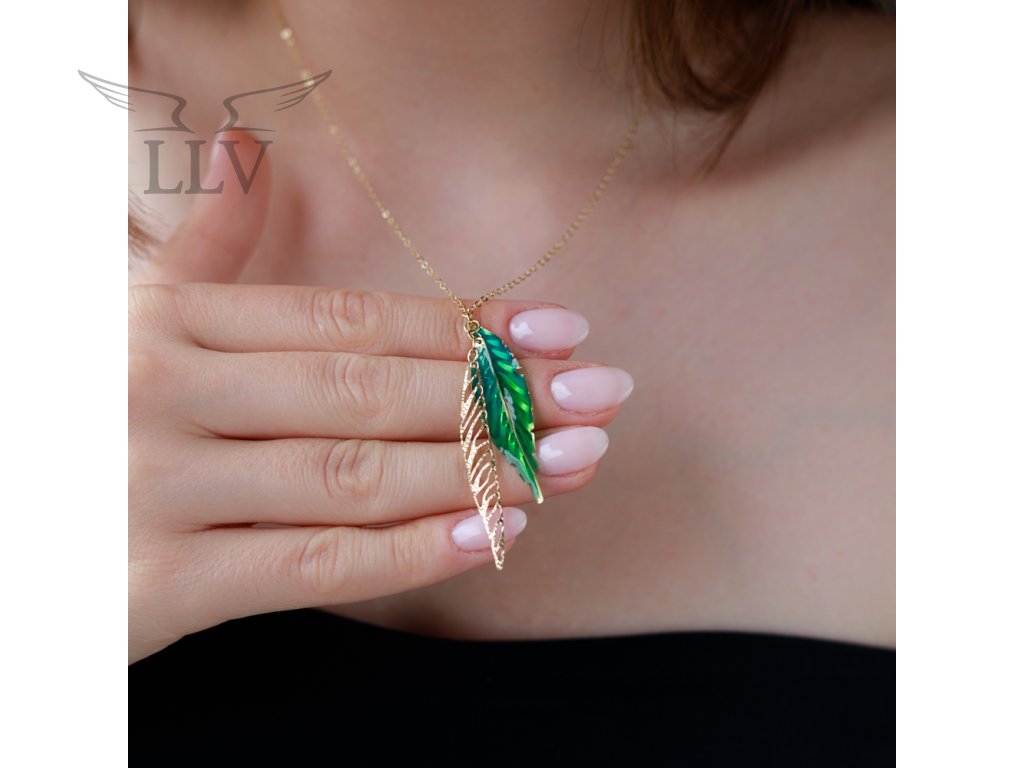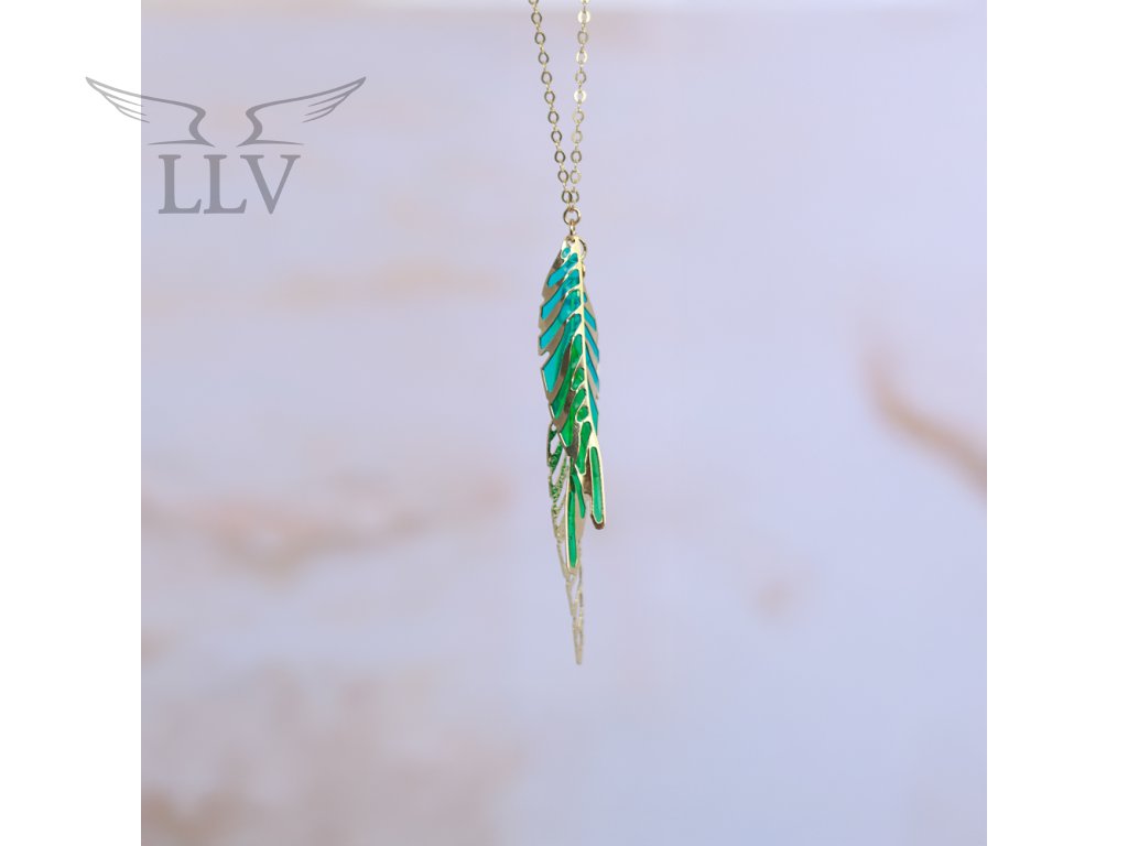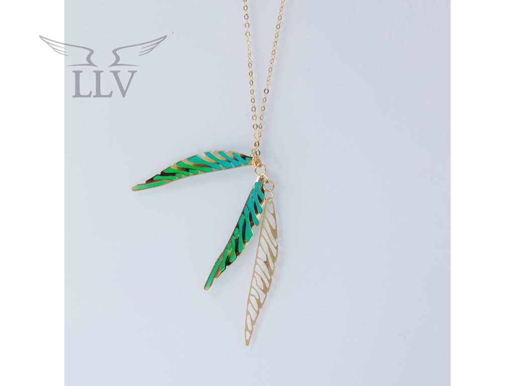 Zlatý náhrdelník zdobený pírky se smaltem LLV22-GN308ST