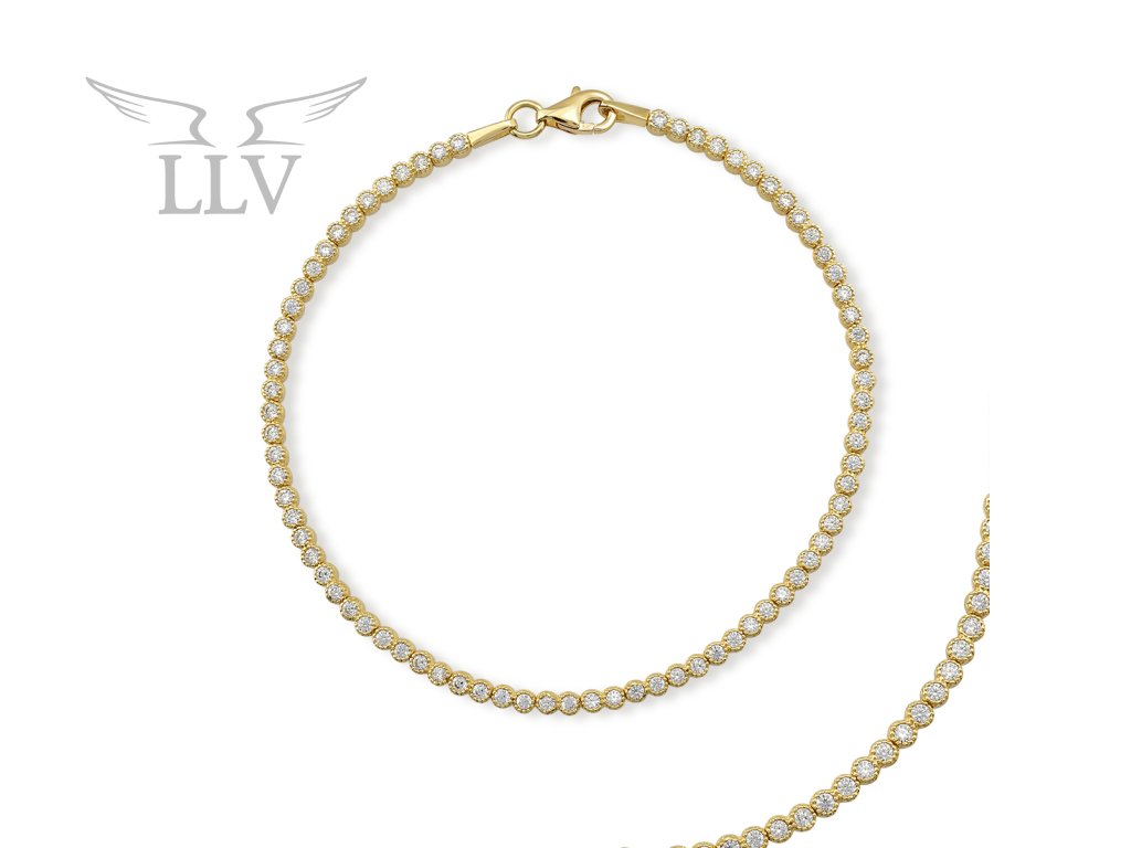Tento okouzlující dámský náramek ve žlutém 14kt zlatě s čirými zirkony si zamilujete. Povrch šperku je hladký ve vysokém lesku. Jemné zirkony jsou perfektně uchyceny v krapnách. Klasické zapínání na karabinku a očko zaručují jednoduché a praktické nošení. Velmi jemný, přesto nepřehlédnutelný šperk si zamiluje každá žena i dívka.